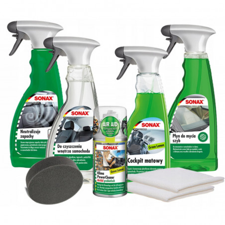 SONAX - zestaw pięciu kosmetyków samochodowych do wnętrza pojazdu z tapicerką materiałową