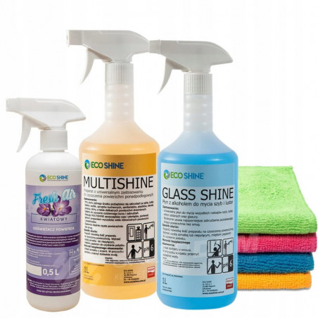 ECO SHINE - zestaw chemii domowej dedykowany do codziennego usuwania kurzu, zabrudzeń.